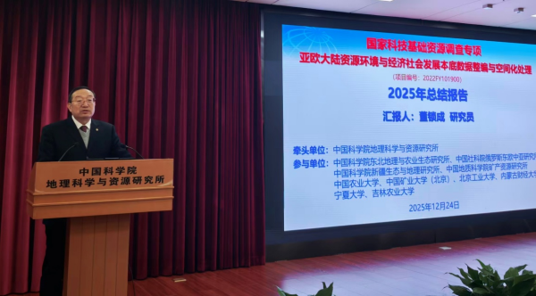 會上,孫福寶代表項目承擔(dān)單位致歡迎詞,向科技部、中國科學(xué)院對該項目的部署和支持及兄弟單位的合作表示衷心的感謝,對該任務(wù)的可喜進(jìn)展表示祝賀。他指出:亞歐大陸是最大的陸地系統(tǒng),也是當(dāng)前國際地緣環(huán)境的一個熱點區(qū)域,更是“一帶一路”建設(shè)的重點區(qū)域,項目組要以年度總結(jié)會為契機(jī),根據(jù)專家意見不斷完善相關(guān)研究,推進(jìn)高水平成果產(chǎn)出。陳宜瑜在致辭中對工作任務(wù)提出嚴(yán)格要求和期待。科技部國家科技基礎(chǔ)條件平臺中心代表對該任務(wù)的進(jìn)展表示肯定,希望借助人工智能等新技術(shù)在科技基礎(chǔ)數(shù)據(jù)整編方法上創(chuàng)新,要以本項目為示范,積極推動資源調(diào)查領(lǐng)域的國際合作;中國科學(xué)院基礎(chǔ)科學(xué)研究局代表強(qiáng)調(diào)該項任務(wù)的重要性,對承擔(dān)單位長期持續(xù)的付出和努力表示贊揚(yáng),希望加大努力爭取更大成績。項目首席科學(xué)家董鎖成研究員匯報了2025年度總結(jié)和主要進(jìn)展。李澤紅副研究員、任春穎研究員、李富佳副研究員、程昊副研究員、楊飛副研究員分別代表五個課題匯報了各課題的年度進(jìn)展。